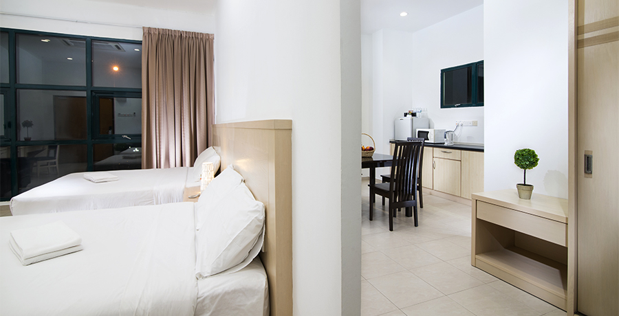 - Dapur kecil dengan microwave dan kulkas mini